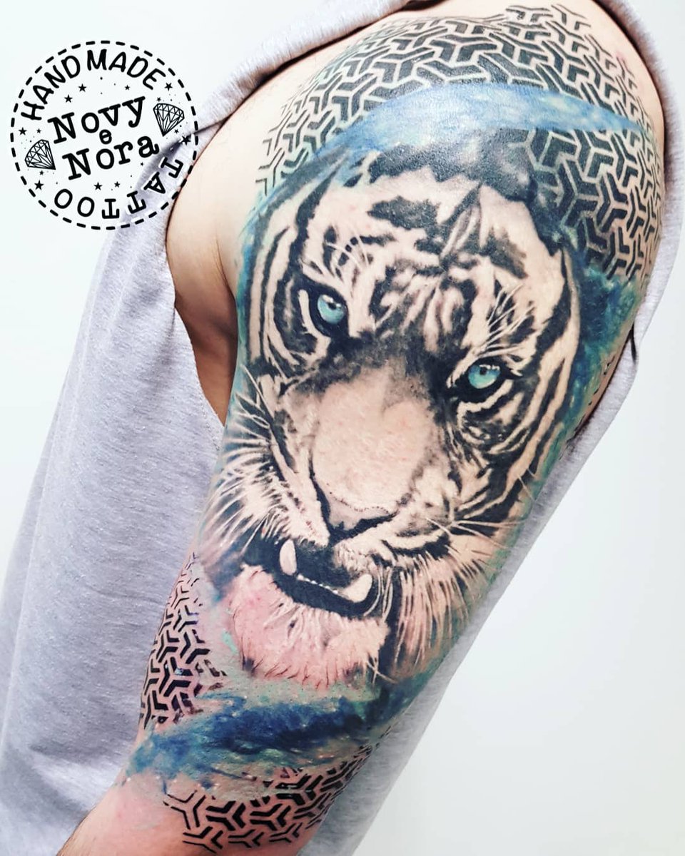 Novytattoo Handmade On Twitter Tiger Nebula Tigrevolantegigante Tiger Tigre Gash Scar Tigertattoo Realistictattoo Realistic Tattoo Art Geometrictattoo Geometric Geometricart Geometria Tattooedmen Inkedman Indelible Lightblue