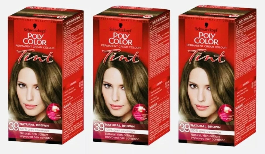 3 X Natural Brown 39 Schwarzkopf Poly Color Permament Cream Colour Tint Hair Dye 4015000211390 Ebay